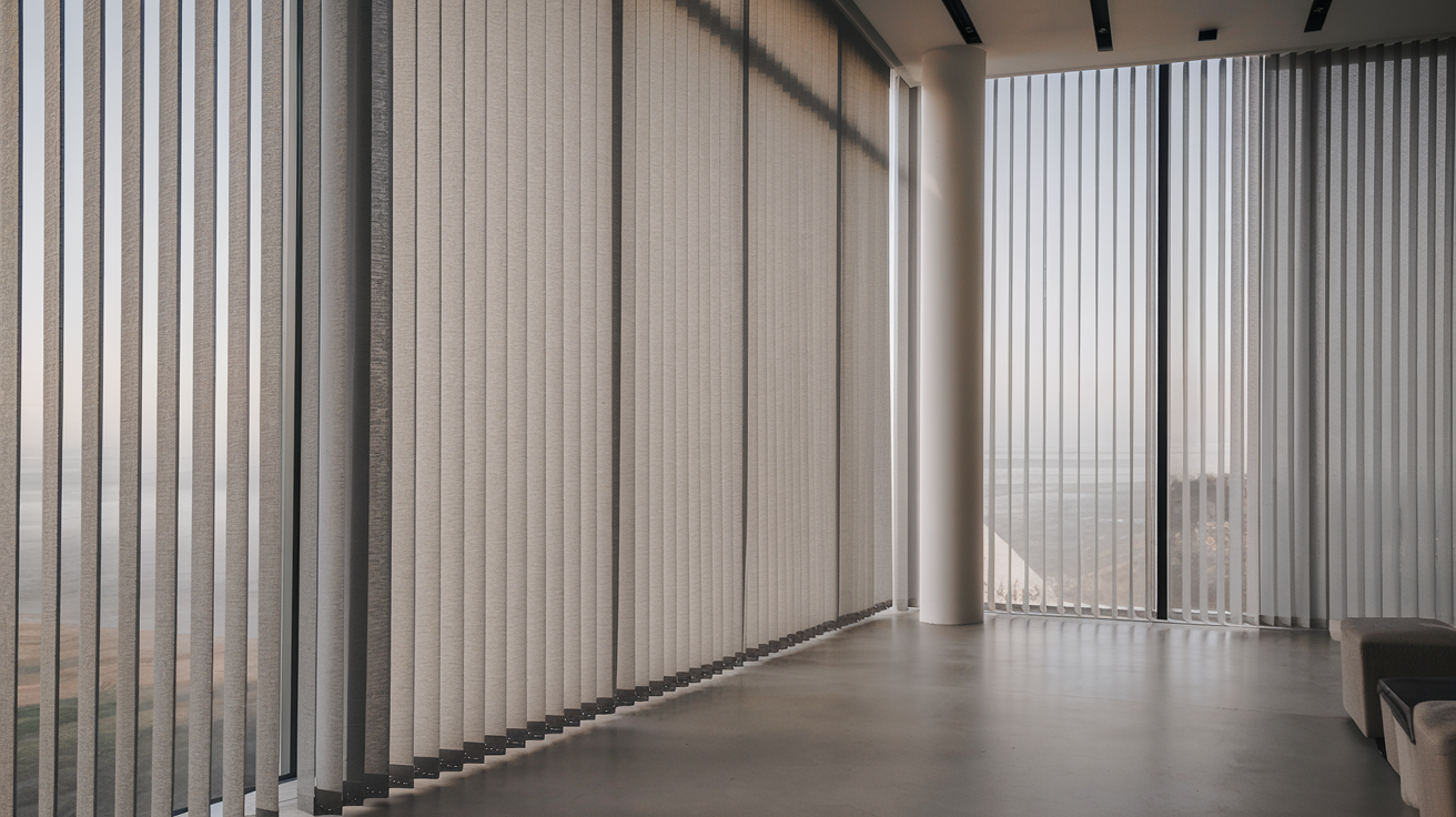 For those who want to reduce heat and glare without blocking the view, solar vertical blinds are a great option. They filter sunlight, reducing UV rays and heat while allowing you to enjoy natural light and outdoor views.